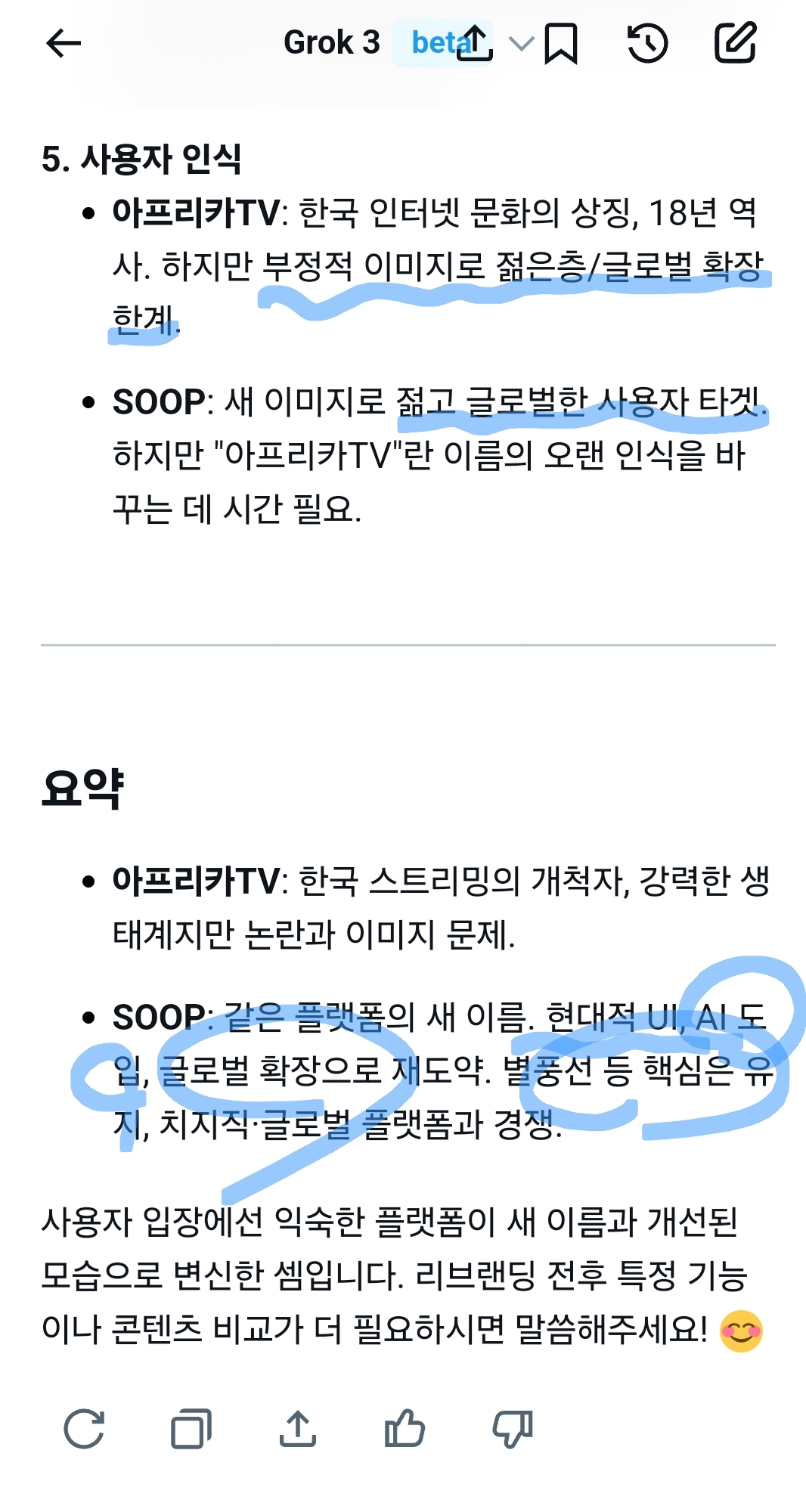 아프리카TV: 한국 인터넷 문화의 상징, 18년 역사. 하지만 부정적 이미지로 젊은층/글로벌 확장 한계.